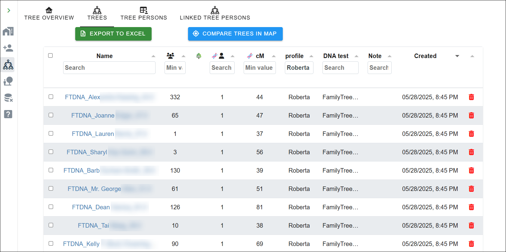 - 3 people match me ONLY on the MyHeritage 2019 and 2024 tests, respectively, but not the same three people