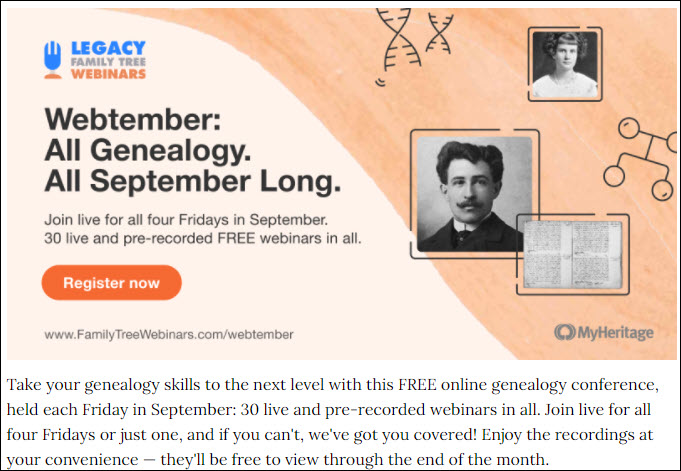 - Legacy Family Tree Webinars – Genealogy and DNA classes, subscription-based, some free