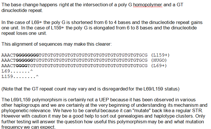 “The L69/L159 polymorphism is essentially a SNP/STR oxymoron.”