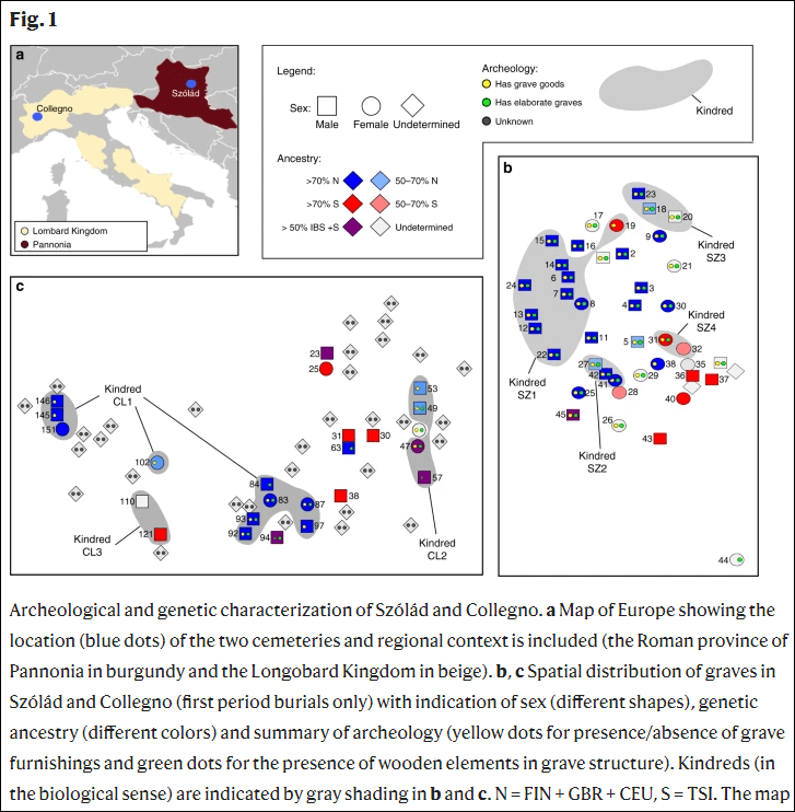 2. Fascinating article, thanks. I note that SZ13 was the man with the horse and with the deepest grave, with others circled around him, probably signifying high status, and that he shared 2 SNPs with a man from Denmark. This would make sense, as historians believe the Langobards were originally from southern Scandinavia, as were many other “barbarian” groups. This notwithstanding the genetic diversity of those buried in Pannonia.