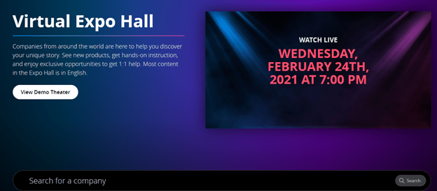If you click on Expo Hall, you’ll see the following: