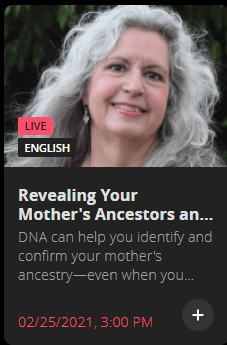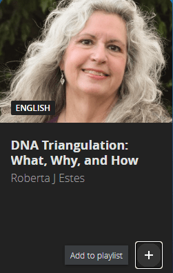 4. Thank you for the helpful information. I’m able to find your “DNA Triangulation: What, Why and How” session, but I’m unable to locate “Revealing Your Mother’s Ancestors and Where They Came From.” I’ve searched by your name and by the title. Any suggestion?