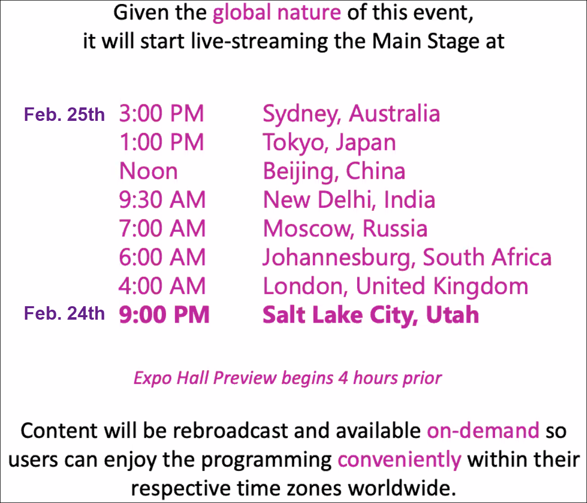 Remember, the Expo Hall opens 4 hours before the conference, so 7 PM EST time.