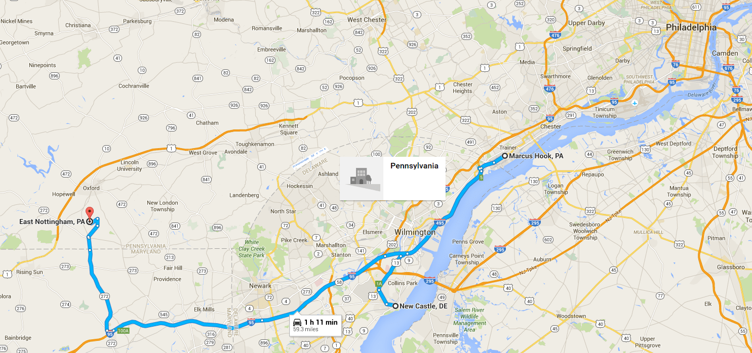 Below is a current map showing Marcus Hook, New Castle and Chester County, PA.